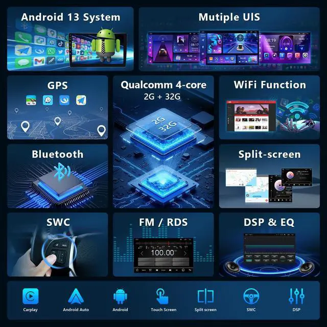 Upgrade Car Radio for Toyota CamryThis Toyota Camry 2012 2013 2014 Android 13 car stereo is perfectly compatible. All necessary cables are provided, no need to cut the cables. Plug and play. If you're unsure about fitment, send us your car's center console photo to confirm