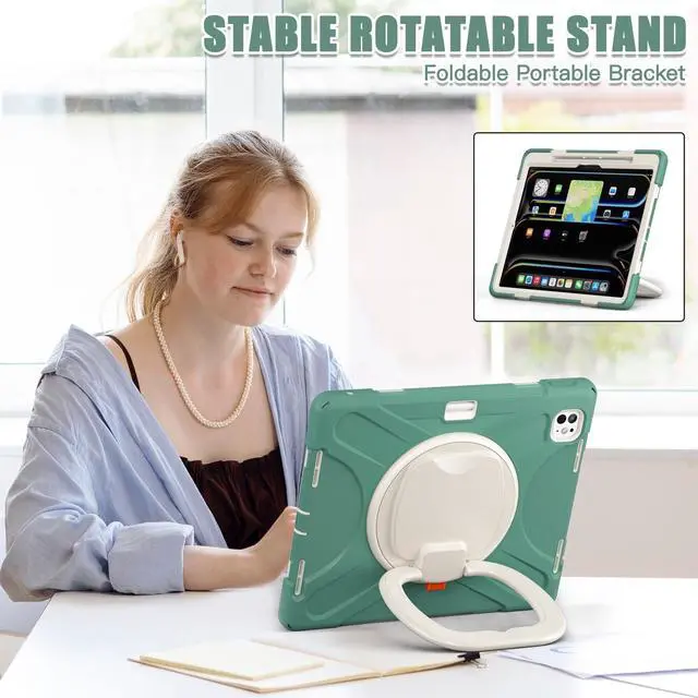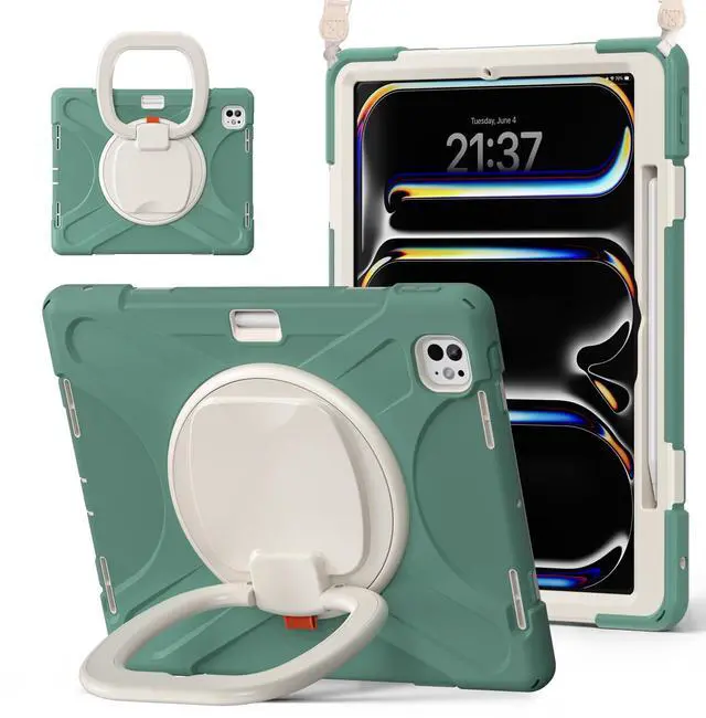Ultimate Protection for Your Compatible with iPad Pro 13" (2024) Discover the perfect case for iPad Pro 13" (M4, A3006), combining rugged durability with a sleek design. Ideal for students, professionals, and creatives, it enhances your device experience while providing superior protection. Rugged Triple-Layer ConstructionWith a hard PC shell and soft silicone layer, this case protects against drops, bumps, and scratches, keeping your iPad Pro 13 2024 safe during travel and daily use. 360 Rotatable StandEasily switch between portrait and landscape modes with the 360 rotatable stand.