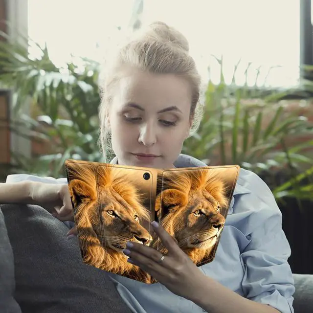 Durable Case for Fire HD 10 Tablet (9th/7th/5th Generation, 2019/2017/2015, 10.1"), Lightweight Shockproof Protective Folio Cover with Kickstand, Auto Wake/Sleep, African Lion