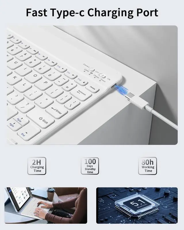 • [Detachable Keyboard & Long Stand by time] Magnetic detachable keyboard can be removed from the case. You ca