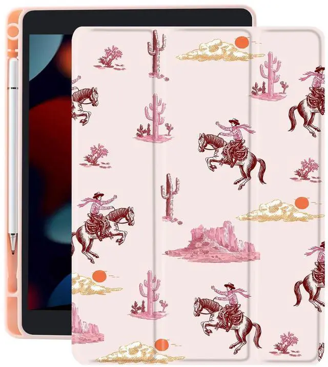 Automatic sleep/wake up&built-in pen holder: This lovely cowgirl western case for ipad can be opened without touching a button. When the case is opened, it will automatically wake up. When you close it, the pad will automatically enter sleep mode. Helps to extend battery life. This cute kawaii case for ipad has a hidden slot designed specifically for storing pencils, making it easy to carry pencils with you.