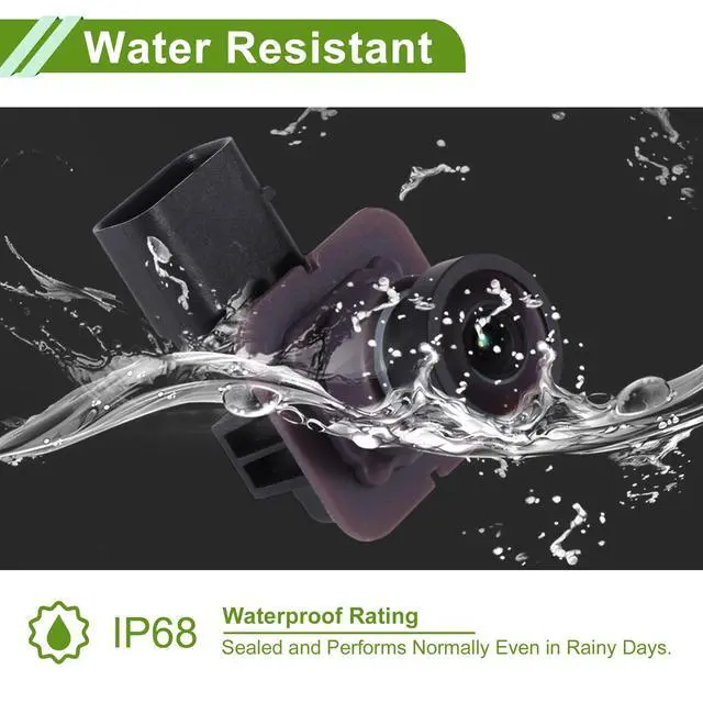 ^^ Specification: With 170 degree wide view detection angle and 1920x1080 camera resolution, it performs normally also as night vision camera, even in the faint light like a dark underground garage. The waterproof rating is IP68 for all weather. So it will not be affected in harsh environments like rainy days.