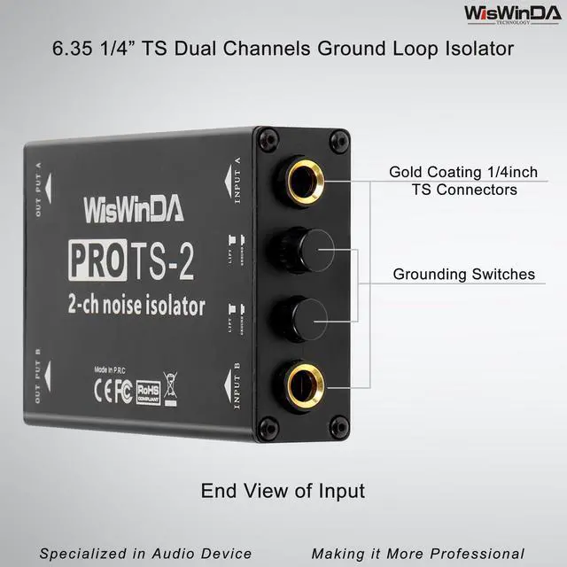 6.35 1/4" TS 2 Channels Ground Loop Isolator/Noise Filter 6.35 1/4" TS could help you to reduce the noise from audio electric system, gives you quality sound output. Perfectly solve car and home stereo noise problems. ^^ Hum/Buzz Eliminator have high quality aluminum shell, sturdy and resist, which has long durability. ^^ Plug&Play Design--The Audio Isolation Transformer Alternator is easy to install, dont need any complicated tools, and it can be used after correct connecting 6.35 1/4" TS. Kind remind please confirm whether the product is suitable before buying. ^^ The Ground Loop Audio Noise Eliminator could work with amplifiers, speakers or mixers, with stable performance, high precision and good reliability.