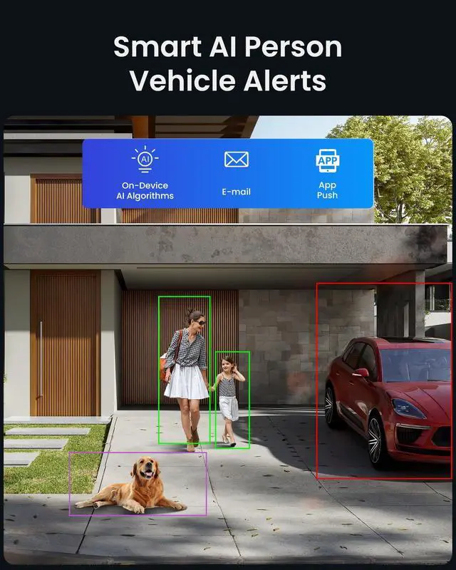 [4K Ultra HD & True Color Night Vision] Experience the superior clarity of ZOSI 4K PoE Camera, featuring advanced Aurora Lux technology that delivers true color night vision. It makes the night scene as clear as the day with the F 1.0 super aperture and 1/ 1.79" image sensor. The 16:9 aspect ratio is specifically chosen to better accommodate human eye viewing habits, making the details clearly visible. ^^ [Smart AI Detection & Instant Alerts] This outdoor camera utilizes cutting-edge AI algorithms for accurate human and vehicle detection, significantly reducing false alarms. Moreover, PoE surveillance cameras can notify you based on specific detection types, let you know what happened at a glance through the lock screen notifications on time.