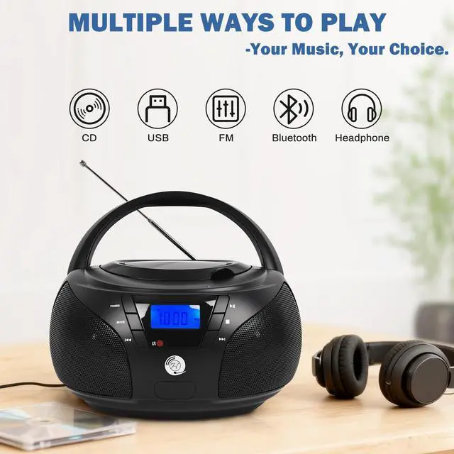 music from multiple sources: CD, USB, Bluetooth, and FM radio (NO AM). This players simple, intuitive control panel allows effortless switching between different modes, making it easy for anyone, even first-time users, to enjoy their favorite songs and radio stations without confusion. ^^ Flexible Power & Custom