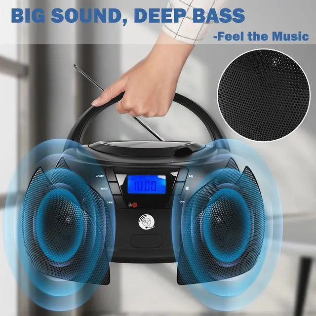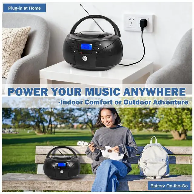 Battery Usage: This player operates on 6 C-size batteries (not included). You can enjoy uninterrupted music wherever you go by simply installing the batteries, making it the perfect portable companion for both indoor and outdoor settings. ^^ Powerful Stereo Sound & Immersive Audio: With its custom-designed large speakers and enhanced acoustic structure, this player delivers strong, clear, and immersive stereo sound. The rich bass and balanced tones fill any room, offering an audio experience that brings your music to life, whether you're enjoying upbeat tunes or calming melodies. ^^ Convenient