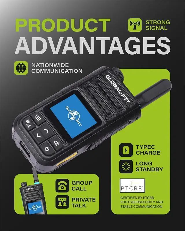 131755): Trust your communications to a system that meets the highest standards. Our Global-PTT radios have successfully gained PTCRB Certification, guaranteeing top-tier cybersecurity and stable, compliant cellular communication across all major telecom networks. ^^ TRUE UNLIMITED RANGE & NATIONWIDE COVERAGE: Connect instantly across the entire country using major Cellular 4G LTE networks. If your cell phone works, this radio works. ^^ MILITARY-GRADE 256-BIT