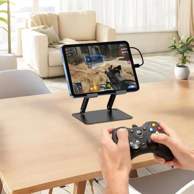 • Tablet stand built with cooling fan Equipped with a USB ultra-quiet fan. It will provide excellent airflow over the back of your device. Keep your device from overheating.