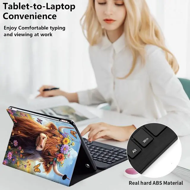Humanized Typing Design: The high-quality ABS keyboard ensures tactile feedback with each key press, reducing typing errors compared to touchscreen typing. Enjoy a smooth, responsive typing experience on your Fire HD 10 Tablet Keyboard Case ^^