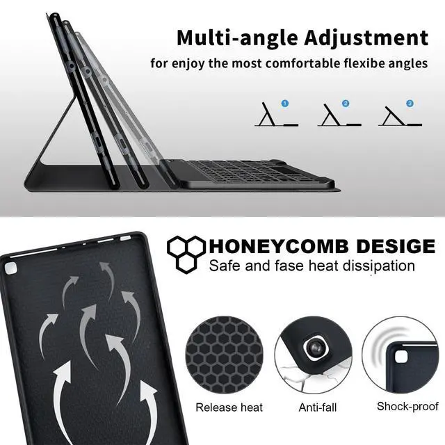 Portable Keyboard & Multi-Angle Stand: Transform your tablet into a laptop instantly with the detachable Bluetooth keyboard. Adjust the Slim PU Leather Stand Cover to multiple viewing angles for comfortable typing, video watching, or browsing on the go ^^