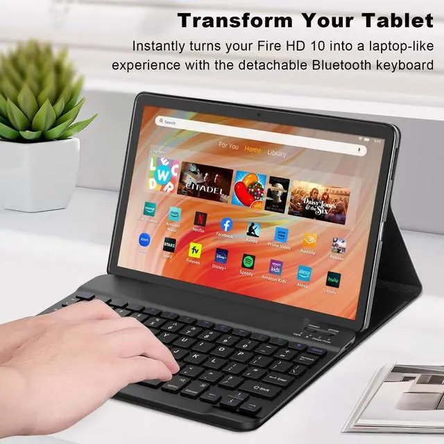 Perfect Compatibility: Designed for Fire HD 10 Tablet (13th/11th Generation, 2023/2021 Release, 10.1 Inch), this Fire HD 10 Keyboard Case fits snugly, providing full access to all ports, buttons, and cameras. Ideal for Fire HD 10 and Fire HD 10 Plus users ^^