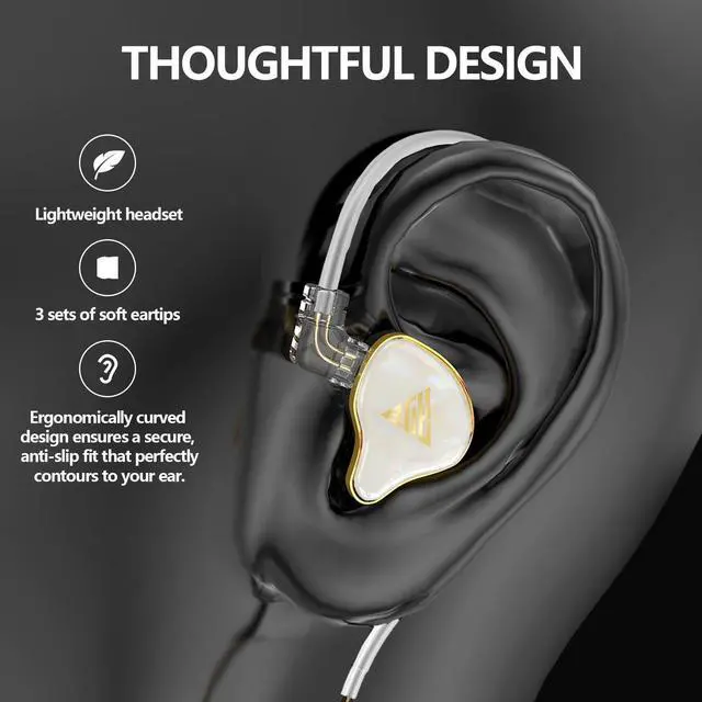 ^^ Premium Build & Ergonomic DesignCrafted with precision, the YJS-820 gaming IEM boasts a lightweight yet durable housing with a unique symmetrical texture and matte finish that resists scratches and fingerprints. Designed for lasting performance and comfort, these IEM headphones offer outstanding value, making them a top choice for entry-level audiophiles and daily users. ^^ All-Day Comfort & Secure FitFeaturing an ergonomic ear fin and hook design, the YJS-820 earbuds wired ensure a natural and secure fit, even during intense movement. The 45 angled sound outlet and included silicone eartips (S/M/L) provide a perfect seal for extended listening.