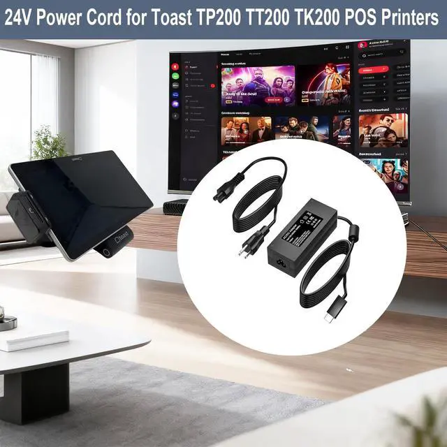 24V Charger Compatible ModelsCompatible with Toast POS systems and receipt printers (TP200, TT200, TT201, TT202, TT203, TT204, TT500, TT501, SOY-2400400)