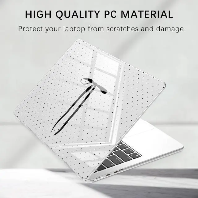 Exquisite Polka Dot Bow Design: The transparent laptop shell perfectly matches laptop in various colors, and the cute kawaii black polka dot ribbon bow pattern design is fashionable and simple ^^ Easy Installation and