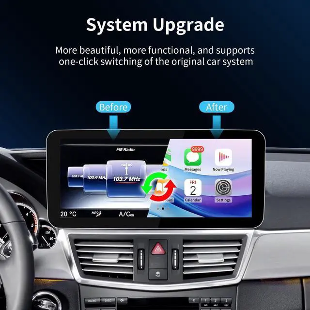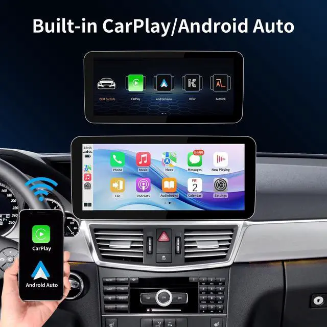 Pre-purchase NoticeThis touchscreen is a 12.3 -inch Linux car display upgrade accessory for Mercedes Benz models. Applicable to Mercedes Benz E Class W212 E200 S212 (2015-2016), models equipped with NTG 5.0 system. If you are not sure about your vehicle system, please consult us. If you are not sure how to install it, you can watch the instructions and installation video we provide. ^^ Built-in CarPlay and Android AutoThis product supports wireless and wired CarPlay and Android Auto, allowing you to seamlessly connect your smartphone to the car system, whether it is iOS or Android system.