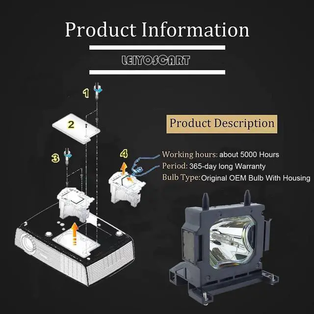 LEIYOSCART Lamps only use original manufacturer OEM bulbs inside. the Lifespan Of The OEM Bulb is 3 Times longer than economic lamps. Can Provide Superior brightness. All The lamp is tested before dispatch to meet the OEM original standards of quality, function and performance. lEIYOSCART Lamp Housing has High Quality Can Easy to install it into your projector as the ways you are taking out your old lamp365-day Warranty and 30-day Refund Guarantee. Within 24 Hours Coutomer Serivce, Buy with Confidence.