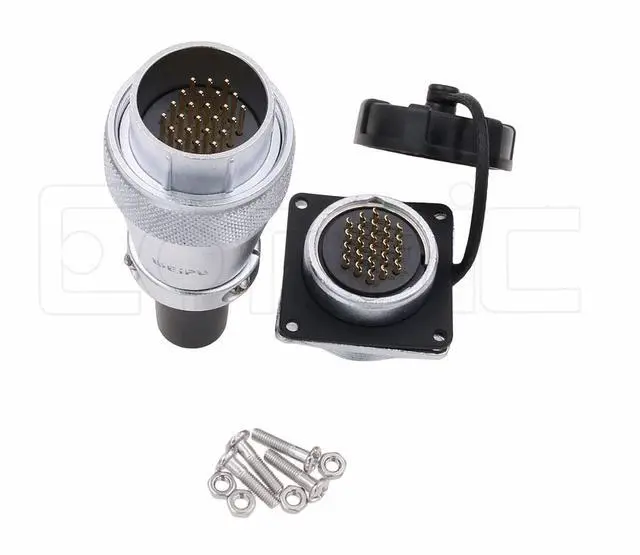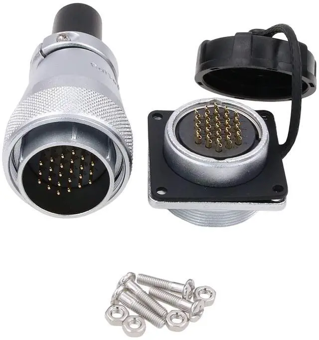 Eonvic WEIPU WS28 24 Pin Connector Waterproof IP67 Metal Male Plug Female Square Socket Panel Mount Aviation Cable Connector (24Pin)