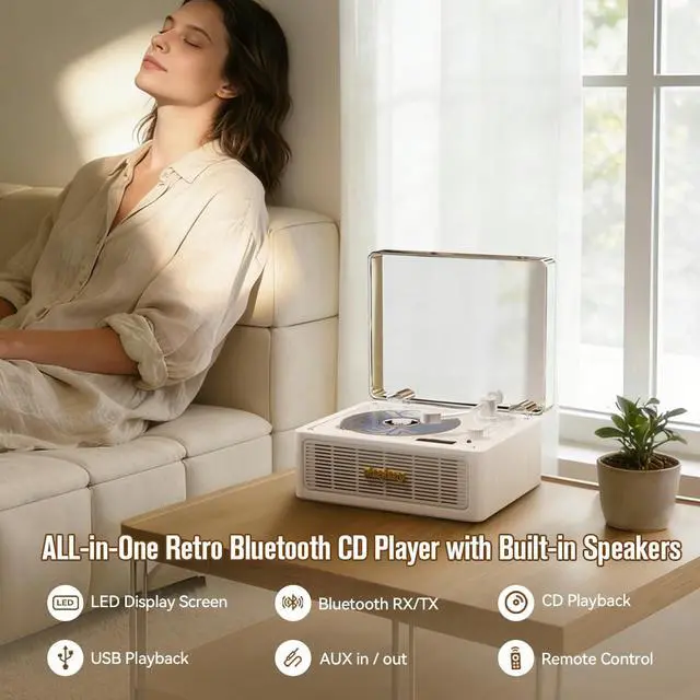 Multi-functional CD player supports CD, CD-R, CDRW, MP3, WMA, VCD, WAV, and USB playback (up to 64GB) with MP3, WMA, FLAC, APE formats. ^^ Bluetooth 5.4 technology enables seamless wireless streaming (BT receiver/transmitter) and connects to headphones or speakers. ^^ Includes Type-C charging, 2000mAh battery, and audio output for headphones or external speakers. ^^ Comes with remote control, charging cable, and user manual; perfect for home, office, or gift.
