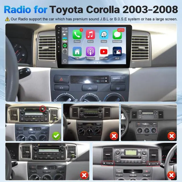 Applicable ModelsThe Android carplay radio for Toyota Corolla 2003 2004 2005 2006 2007 2008 (Fit J. B. L Version) If your car comes with J. B. L or has a large Navi screen, this car stereo is compatible. If you're not sure, you can send us your car's model, year and a car dashboard picture to confirm. we provide online help. Clear instruction and user manual support you install the stereo all by yourself. ^^ Mirror Link with HD IPS Touchscreen & Split Screen Leadfan android car radio for 2004 toyota corolla equipped with mirror connection function.