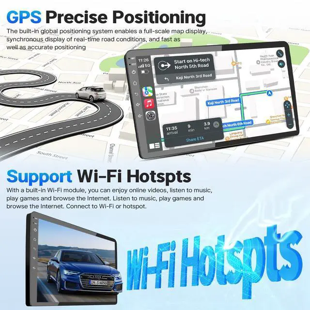 ^^ GPS Navigation & WIFIThis touch screen car stereo for corolla 2008 stay connected with WiFi, enabling real-time traffic updates, The built-in GPS and external antenna ensures precise navigation, while this android head unit car play for 2007 Toyota Corolla aslo support offline maps in low-coverage areas. After connected to WIFI, you can download various applications, like YouTube/Spotify streaming. ^^ SWC & Backup CameraThis head unit for Toyota Corolla 2008 equipped with a wide-angle rear backup camera, provides exceptional visibility for safer parking. Bluetooth gps car radio for 2003 toyota corolla aslo support steering wheel controls, allowing you to adjust volume, change tracks, and answer calls without touching the screen! Providing a familiar and convenient driving experience.