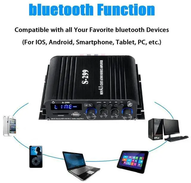^^ Multiple Connectivity: The latest version of Bluetooth 5.0, giving you a long range of 30 feet. You can connect it to your music streaming devices like PC/cell phone/laptop via bluetooth connection, 3.5 mm AUX cable or headphone jack. Also supports USB port, SD/TF card port. ^^ Special Functions-- With the remote control function, you can change the audio settings remotely, making you less tiring and more convenient.