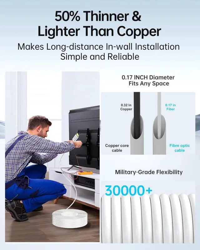• Universal Compatibility for All Your DevicesThis HDMI extender cable fiber optic is backward compatible with all HDMI versions, making it perfect for 4K/8K TVs, monitors, projectors, gaming consoles (Xbox Serie