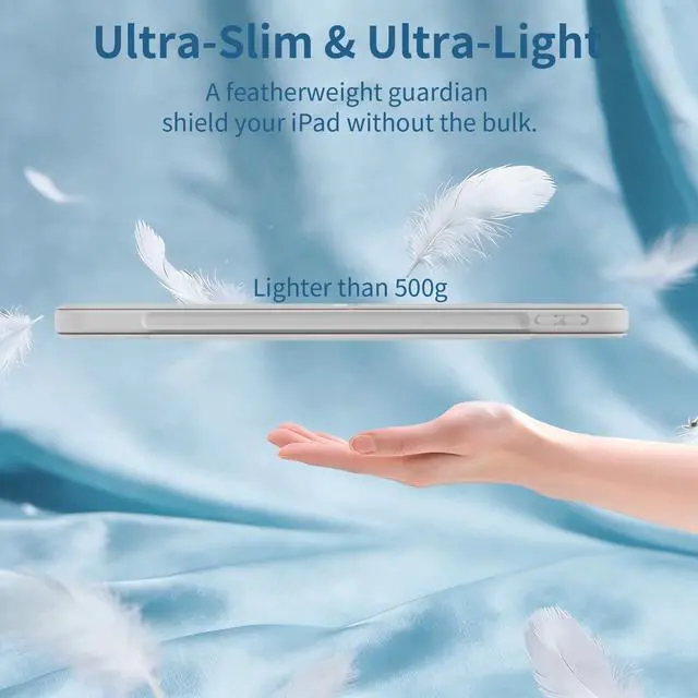 ^^ Magnetic Clear Hard PC Back Shell The KTGGHG Transparent back shell is crafted from durable, scratch-resistant clear PC material, offering robust protection while showcasing your iPad's 11inch original design. (Please remove the protective film on both sides before use for optimal clarity. ) The built-in round magnet provides a secure attachment to the front cover or any other magnetic surface. ^^ Premium Materials & Precision Fit Constructed with quality PU leather and flexible TPU that offer a premium, pleasant-to-touch feel, this case combines superior tactile quality with robust protection. The interior is lined with soft microfiber to prevent scratches. Precision-engineered cutouts ensure seamless access to all ports, buttons, Touch ID, cameras, and speakers of your iPad Air 4th generation 10.9 inch case and other compatible models. ^^ Auto Wake/Sleep Function The built-in magnetic strip automatically wakes your iPad when the simple cover is opened and puts it to sleep when closed, effectively helping to conserve battery life.