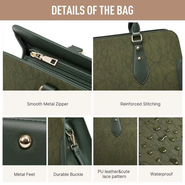 Durability Laptop Bag: The womens laptop bag is made of high-quality design PU leather and high-density nylon lining, this womens laptop bag is water-resistant, scratch-resistant, wear-resistant and anti-wrinkle, Reinforced flat bottom with 4 rivets will reduce friction and scrape of bottom of the ladies office bag ^^ Large