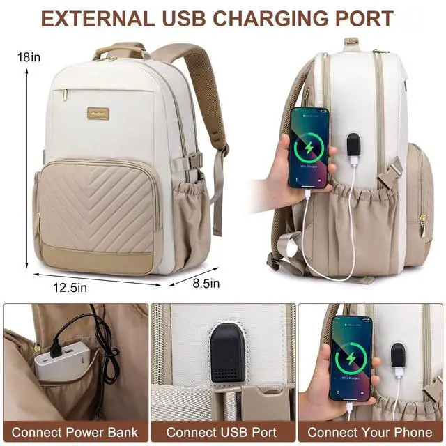 It makes carrying your laptop so much easier. Professional and well made for work, business, travel, commuting, college, teacher, nurse, daily use as a practical gift for women ^^ Durable Comfortable Backpack Perfect GiftOur waterproof college backpack is made of sturdy, tearproof and water resistance fabric, comfortable and durable. This bookbag is the best gift choice for your wife, girlfriend, mother, friends, etc. on birthdays, Thanksgiving, Christmas, New Year, and Valentine's Day. Believe in your choice and travel happily with your family.