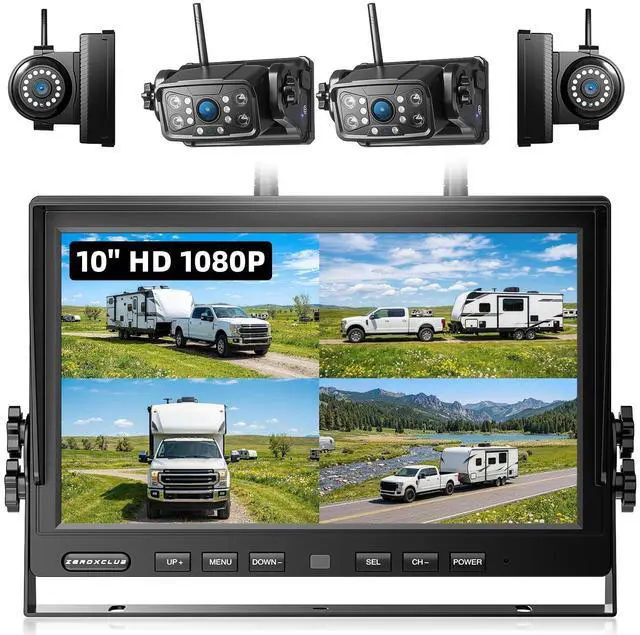 Magnetic Wireless Rear/Side View Camera: This magnetic wireless backup camera system includes a 10" HD monitor and 2 magnetic rear view backup cameras and 2 magnetic side view backup cameras. With a strong magnetic base, this magnetic wireless backup camera system can be firmly attached to metal surface. If your vehicle is not built with a metal cover sheet, you will need to mount a highly magnetic metal plate so that the magnets on the camera are strong enough to hold.