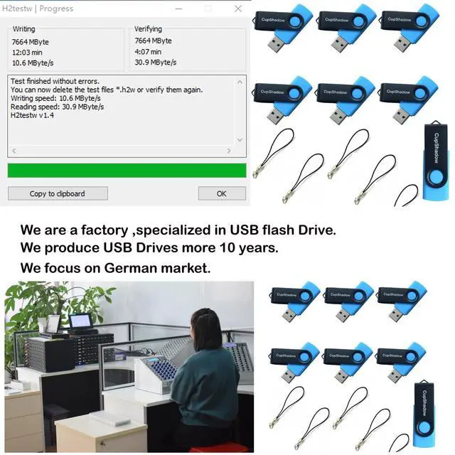 Pack Flash Drives: 2.32 * 0.75 * 0.39 inches, the mini size is easy to carry. You can use USB Drives to copy the data files and to download the music ^^ We are specialized in USB Flash Drive more 9 years. And we focus on German market on B2B. We can do customized logo for you.