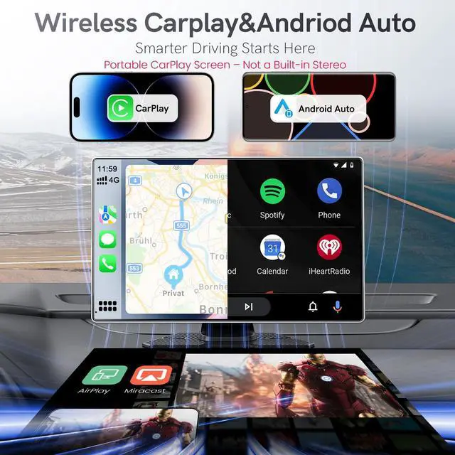 Upgraded 11.26" Incell HD Touch Screen Experience superior display quality with our advanced 11.26 -inch Incell screen. Compared to traditional Oncell screens, Incell technology delivers faster touch response, higher clarity, and better sunlight visibility. Enjoy a seamless and immersive CarPlay and Android Auto experience with vibrant 1920720 resolution, wide viewing angles, and ultra-smooth touch feedback. ^^ Stable Power SupplyUse the included high-quality car charger for steady power and consistent currentpreventing drops, boosting stability, and keeping your COOCOM Carplay running smoothly. Universal fit, no complex wiring needed. ^^ Wireless CarPlay & Android Auto Enjoy seamless plug-and-play wireless Apple CarPlay and Android Autoinstantly connecting you to advanced in-car tech.