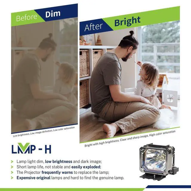 Compatible Models: for Canon WUX10, X700, SX7, SX700, WUX10 Mark II, REALiS SX7, REALiS SX7 Mark II D, REALiS X700, REALi SX700, REALiS WUX10, REALiS WUX10 Mark II, REALiS WUX10 Mark II D, XEED SX7, XEED SX7 Mark II, XEED X700, XEED WUX10, XEED WUX10 Mark II, XEED WUX10 Mark II Medical Projectors ^^ LMP-H projectors' bulbs are made of the highest quality materials and have the same functions as your original bulbs. They are perfectly matched and compatible with your projector. ^^ All projector bulbs are equipped with enclosures instead of bare bulbs. Our bulbs feature an optimized filament design, which helps prevent the machine from overheating or experiencing abnormal temperatures, thereby protecting the bulbs and the projector. ^^ When installing a new light bulb, wait for the old bulb in the projector to cool down before replacing it. And you need to be aware of the connector make sure it connected well. ^^ giving you great peace of mind. If you have any questions about the order, please feel free to contact our dedicated support team at any time.