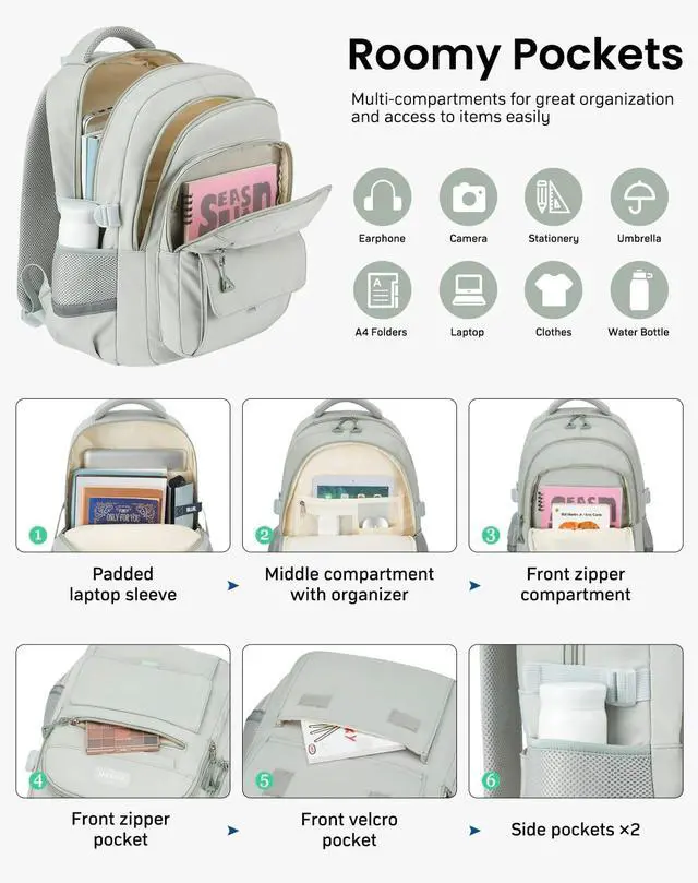 Pack It All In: Simple & convenient design, 15.6" or 17.3" laptop sleeve, 1 huge main compartment for A4 folders, books and lunch box, middle pocket with organizer, 3 front utility pockets, 2 side pockets and a back anti-theft pocket. Whether your carrying textbooks, tech gadgets, or travel essentials everything has its place within this versatile pack ^^