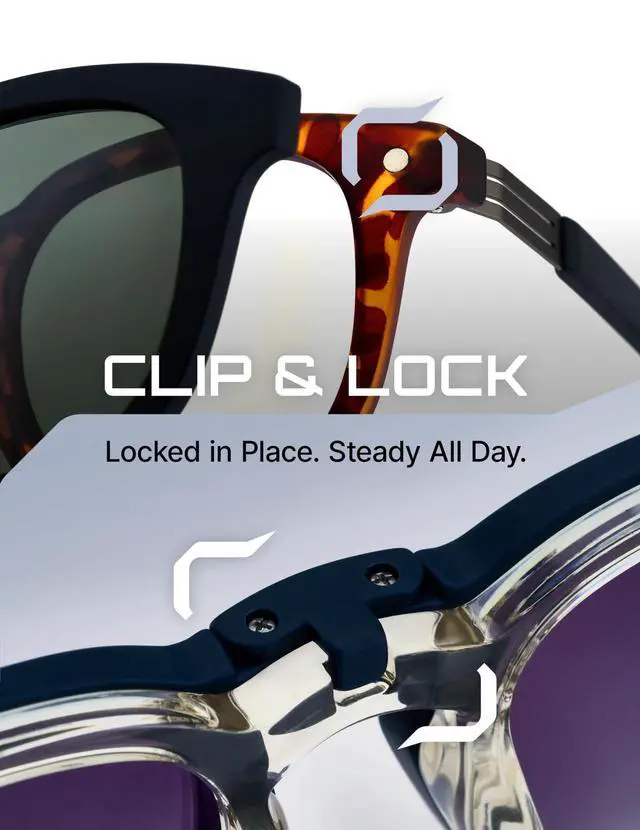 ^^ 14DAY PEACEOFMIND TEST+3MONTH COVERAGE Cliptonic invites you to clip in for two whole weeksat the desk, on campus, or on the road. If your eyes dont feel fresher, clip them back to us; no forms, no restock fees. For the next three months weve got every magnet, hinge, screw, coating, and TAC polarized clip covered, with 24hour email help. Hasslefree care keeps our magnetic clipon bluelightblocking glassesand your visionbold and free.