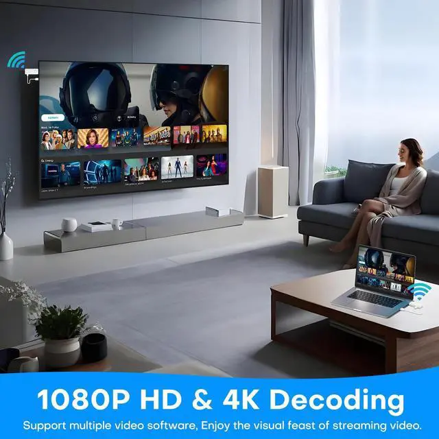 HDMI Extender Kit: Simplify your installation and Keep the space neat and organized. This wireless HDMI transmitter and receiver automatically pairs with supported devices, requiring no additional apps for basic operation. Just connect the transmitter and receiver to your HDMI devices, and enjoy seamless wireless streaming. Realizing true plug-and-play! White ^^ 1080P HD with 4K DecodingThis Wireless HDMI Stream HDR-compatible content wirelessly at buttery-smooth 1080P. Compatible with 4K source devices (1080P output) - Ideal for immersive home theater or conference room presentations, whether streaming audio/video. White ^^ Tiny Size and Broad CompatibilityThis Wireless HDMI Transmitter and Receiver Smaller than a car key yet works with most HDMI output devices since 2010 -including, TVbox, laptops, TVs, Cameras, monitor, 4K Streaming Devices. etc. Comes with HDMI-to-Type-C cable for MacBooks. White ^^ Multi-scenario use, From convention centers to backyard