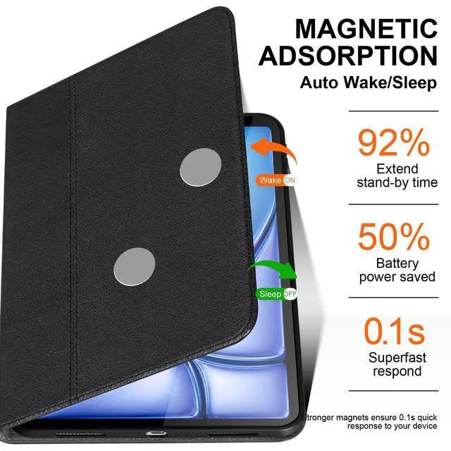 a robust 3-layer defense: a tough leather exterior, a shock-absorbing honeycomb TPU inner shell for impact resistance and heat dissipation, and a soft microfiber interior lining to prevent scratches ^^ Smart Magnetic Cover & Multi-Angle Stand: The integrated magnetic cover enables auto wake/sleep function. Easily fold it into a stable stand for multiple viewing angles, suitable for typing, video calls, or watching videos ^^