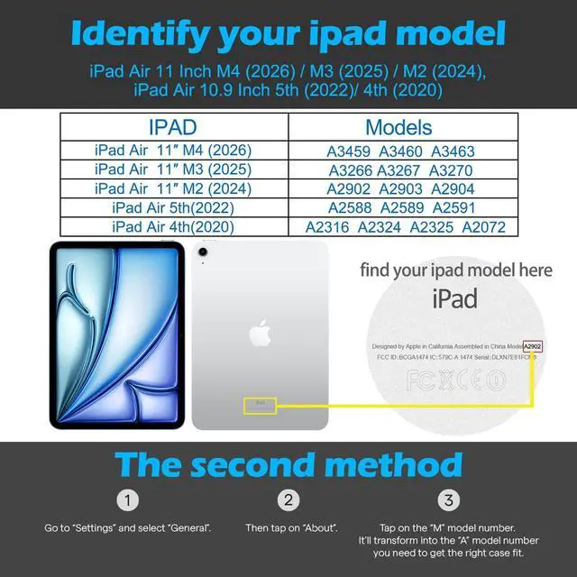 Models: Designed exclusively for iPad Air 11-inch M4 2026(A3459/A3460 /A3463), M3 2025 (A3266/A3267/A3270/A3459/A3460 /A3463), M2 2024 (A2902/A2903/A2904) & iPad Air 5th Generation 10.9 -inch 2022 (A2588/A2589/A2591) and iPad Air 4th Generation 10.9 -inch 2020 (A2316/A2324/A2325/A2072) Please check your iPad's back model number to ensure perfect compatibility and full access to all ports and buttons ^^ Premium Full-Grain Leather with