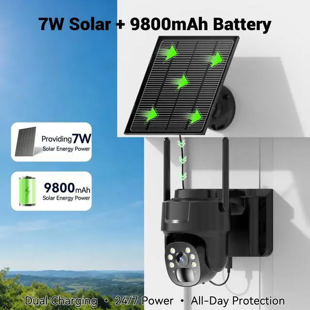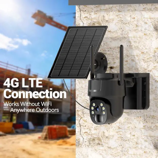 No WiFi or Power Needed 4G Solar Camera - Works via 4G LTE network, no WiFi required. Built-in 9800mAh battery and solar panel provide continuous power for farms, barns, construction sites, or any off-grid location. ^^ Built-in SIM with Free Data and Flexible Plans - Includes a non-removable virtual SIM with 300MB free data.