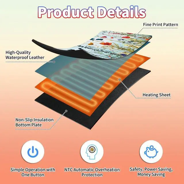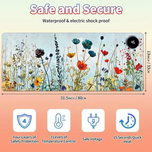 Are You Tired of Having Cold Hands While Working or Gaming? Select BPQOJB Heated Desk Pad is here to keep you warm and comfortable Whether You're Working, studying or gaming, Heated Mouse Pad ensures you stay cozy and productive all winter long Fast Heating with 3 Adjustable Levels Heated Desk Mat with 3 temperature settings: Low (40C / 104F) for gentle warmth Medium (45C / 113F) for consistent comfort High (50C / 122F) for a quick boost of heat Desk Hand Warmer Simple touch control lets you switch between levels effortlessly, You can set it to the right warmth. just seconds, feel the heat and say goodbye to cold hands, wrists, and arms Auto Shut-Off Design Mousepad warmer includes 1, 2, and 4-hour auto shut-off timers. Long-press the power button until it flashes to activate. helping you save energy Durable Material Crafted from smooth PU leather, Gaming Mouse Pad Warmer features a waterproof and easy-to-clean surface Heated Desk Mat Non-slip base keeps it securely in place, providing a stable surface for your keyboard, mouse, and laptop Large & Multi-Functional Design Large Mouse Pad at 31.5 x13x 0.08 inch (80x33x 0.2 cm) is spacious enough for your desk essentials, keeping your workspace neat and organized Warmer Mouse Mat is winter companion, not just for desksuse it as a foot warmer, a cozy pet mat or resting surface. Perfect for home offices and gaming Pattern Printing Design Unique Pattern Printing Heated Desk Pads decorate your study, computer desk, bedroom or office, perfect accessory for any modern office and home BPQOJB Pattern printing desk mat is the best gift for family, friend and yourself