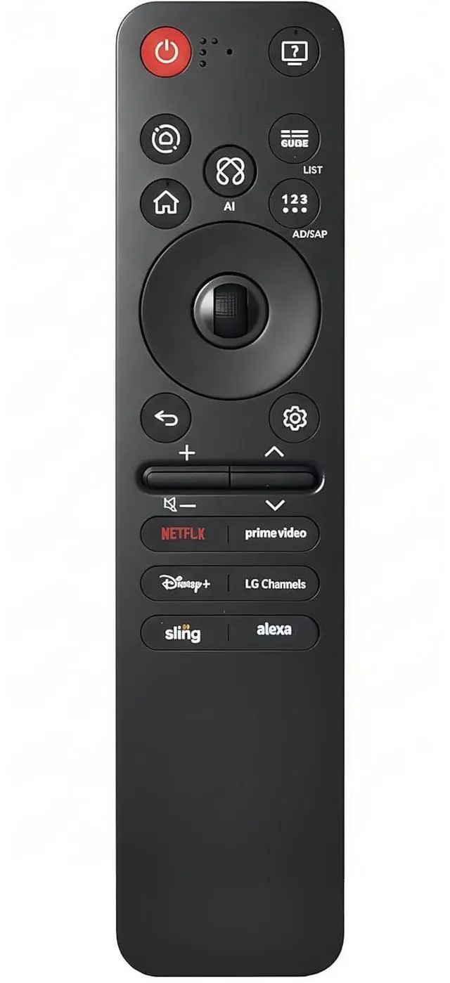 Enhanced with voice control and six dedicated hot-keys for instant access to popular services like NETFLIX, Disney+, LG Channels. Purchase it now and use your voice to search and stream millions of movies, sports, and TV series! ^^ Pointer & Cursor FunctionThe device also offers intuitive navigation through point, click, and scroll capabilities, allowing the viewers to control the contents from anywhere and any angle within the household. ^^ Reliable & Energy-SavingCrafted with sustainable, high-end ABS materials, this remote is built to last - each button can endure 120, 000 clicks or last 10 years.