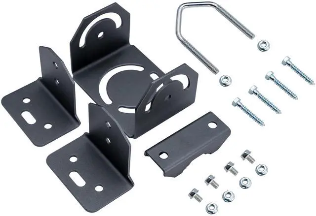 The Pro-Mount Adjustable Mast Mount is a heavy-duty, powder coated mast mount designed for commercial and residential mounting of TV antennas, wifi antennas, cellular antennas, weather stations, and more. The adjustable design allows the Pro-Mount to be installed in several different orientations and mounting surfaces including on an eave, on a wall, or in the attic. The Pro-Mount will accept masts up to 2" in diameter and is recommended for use with the Channel Master Pro-Tube 30" mast or with any other masts under 5' in length. For masts longer than 5' or for additional strength, multiple Pro-Mounts can be spaced evenly along the length of a mast.