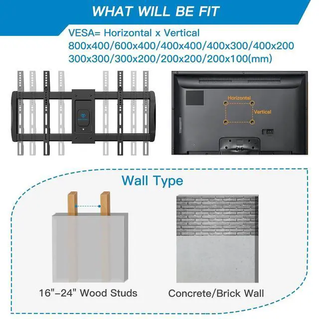 ^^ UNIVERSAL DESIGN: The full motion TV wall mount is designed to fit most 42-90 LCD, LED, OLED 4K flat screen or curved TVs with VESA mounting patterns 200x100mm (8x4) - 800x400mm (24x16) and weight up to 150lbs. ^^