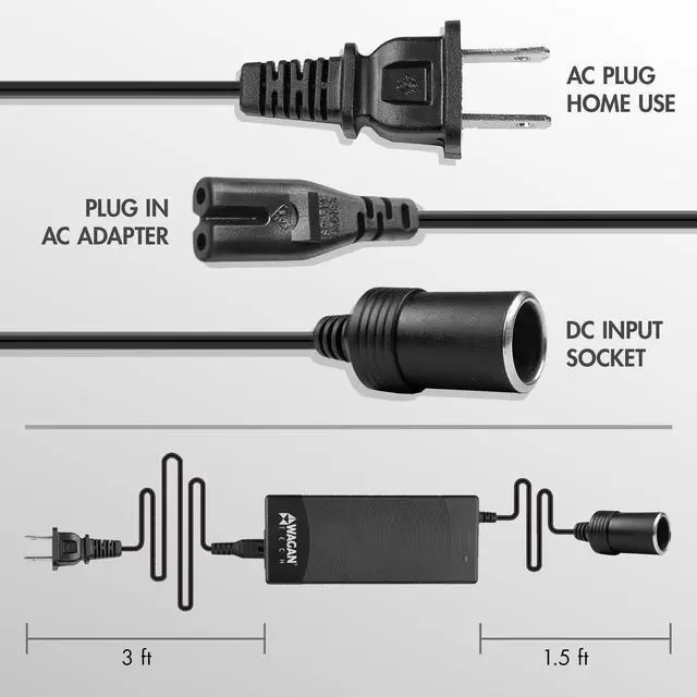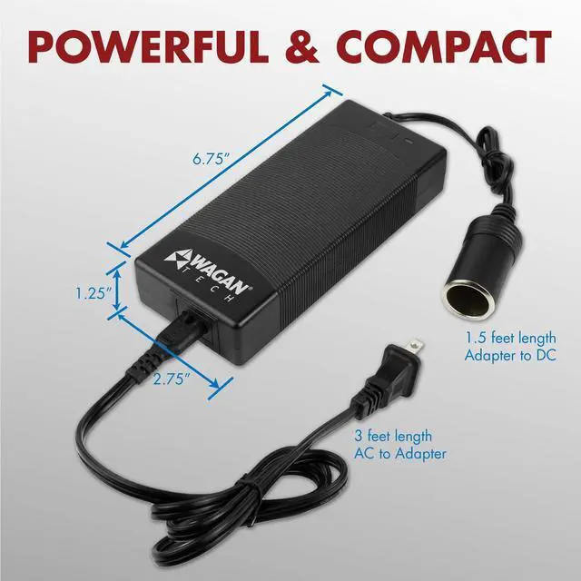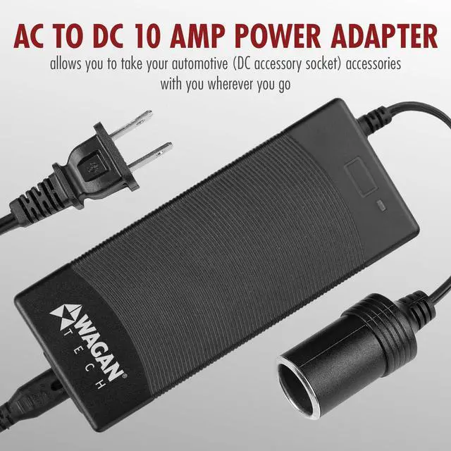 Description This UL Listed 10A AC to 12V DC power adapter will power you car appliances and accessories anywhere there is a wall outlet (AC)! 10A AC to DC Power Adapter Wagan Techas 10 Amp AC to DC Power Adapter allows you to take your automotive (DC accessory socket) accessories with you wherever you go and is ideal for school, home, or office use! Convenience While On The Go Grab one of your Wagan Tech Cooler/Warmers, jump in the car and go for a drive. While you drive the cooler keeps your food cool, but what about when you reach your destination? That is where the AC to DC Power Adapter comes in; just take your cooler with you, plug the AC to DC Power Adapter into the wall outlet and then plug the cooleras plug into it! But Wait, Thereas More! There are even more uses for our AC to DC