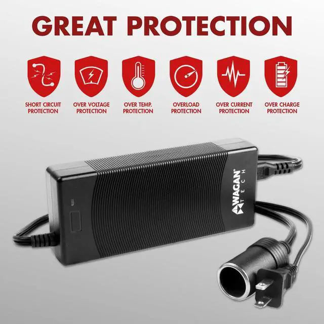 Power Adapter: Breast pumps, air compressor/inflators (12V automotive), Smartphone chargers, Heated Seat Cushions, Air freshener/ionizer, DC fans, DC cab heater, hot plates, small CPAP machines, and more*! Endless Uses Once you own a Wagan Tech AC to DC Power Adapter, youall never leave home without it. You will always find a use for it whether you are on the road, in the office, at school, or in your own home. The AC to DC Power Adapter is a great way to take your Wagan HealthMatea Heated Seat Cushions with you from your car into the office or house. Why Ours Is The Best Many people have purchased our 5 Amp AC to DC Power Adapter and loved it; just look at the thousands of 5 star reviews online! Other manufactures make identical looking units, but the specs are not identical! Be sure to buy a Wagan Tech branded adapter so youall be certain that it is not only powerful, but also safe for you and your family to use! Quick List of Features UL Listed 10A of 12V DC Power (120W) Converts AC to DC Power Works with most 12V DC Appliances Doubles the Use of your DC Appliances Easy-to-Use, Plug-and-Play Powerful & Compact A A *Check the power requirements of your 12V device and be certain that it does not exceed 10 amps (120 watts) prior to plugging it in to theA AC to DC 10 Amp Power Adapter.