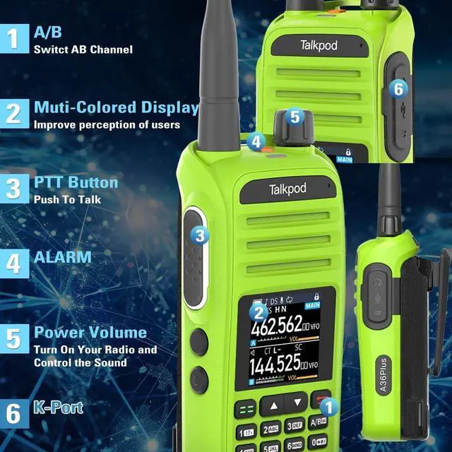 Advanced Features: 1.44 inch Color Display, 16 Full Keypad (w/ Auto-Lock), 2 Programmable Function Side-Keys, 2.5 kHz Tuning Steps, SOS Emergency Top Button, Battery Saver Time-Out-Timer (w/ alarm), 8-Character Alpha Channel Names, Type-C Connector Voice Announce (English or Chinese) & Key Beeps (optional) 10 Squelch Levels BCL, VOX, SideTones, DTMF & ANI PTT-ID, Roger Beep ^^ Compact and