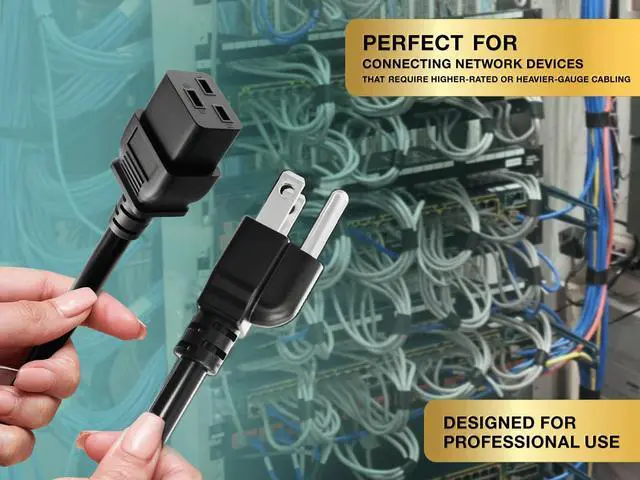 This professional-grade NEMA 5-15P to IEC-60320-C19 power cord delivers reliable power connectivity for server and data center applications. Engineered with heavy duty 14 AWG conductors, this cable handles demanding power requirements while maintaining safety and performance standards.