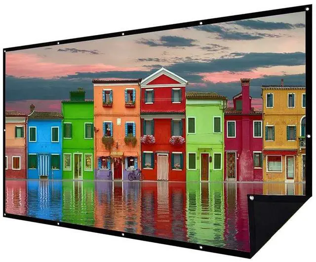 Cloth Projection Screen with double layer NIERBO newly designed projection screen still uses the traditional polyester cloth material. But its designed to be white in the front, black in the back now. This unique technology helps to reduce the influence of ambient light, and improve the picture quality greatly. ^^ A Screen with Higher Color Saturation With the 1.5 gain, 150 inch projection movie screen provides an image with higher color saturation. Movie, football match and sports events will be more enjoyable accounting for the 4k resolution. ^^ No Creases Projection Screen You might be annoyed by a screen full of creases.