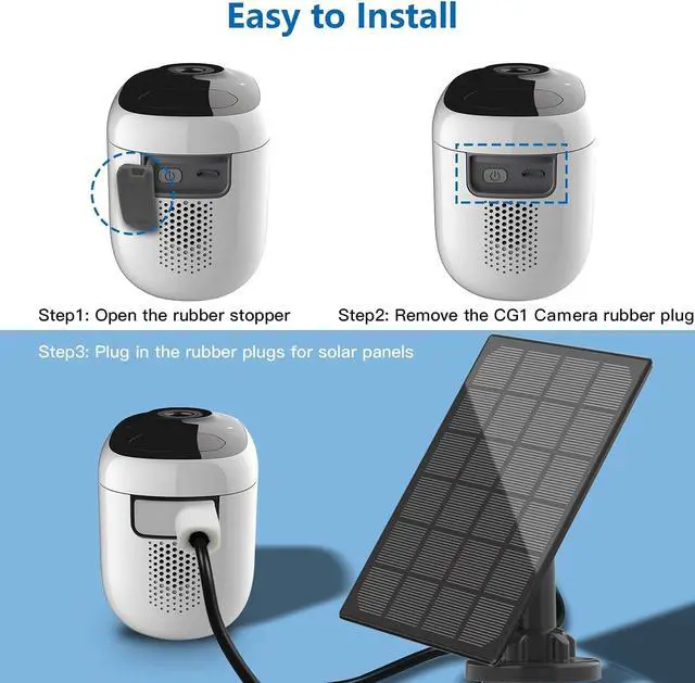 ^^ Compatibility: The small solar panel is specifically designed for your camera's battery, which typically requires a DC 3V input. with customized silicone cover for charging port, ensure that the panel can effectively charge your camera's battery. (No compatible with Arlo Blink cameras) ^^