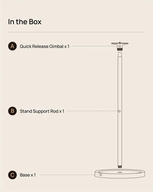 Modular Design Makes Installation Easier: Connect the quick release gimbal to the projector, align everything with the support rod, and lock it securely with a simple twist.